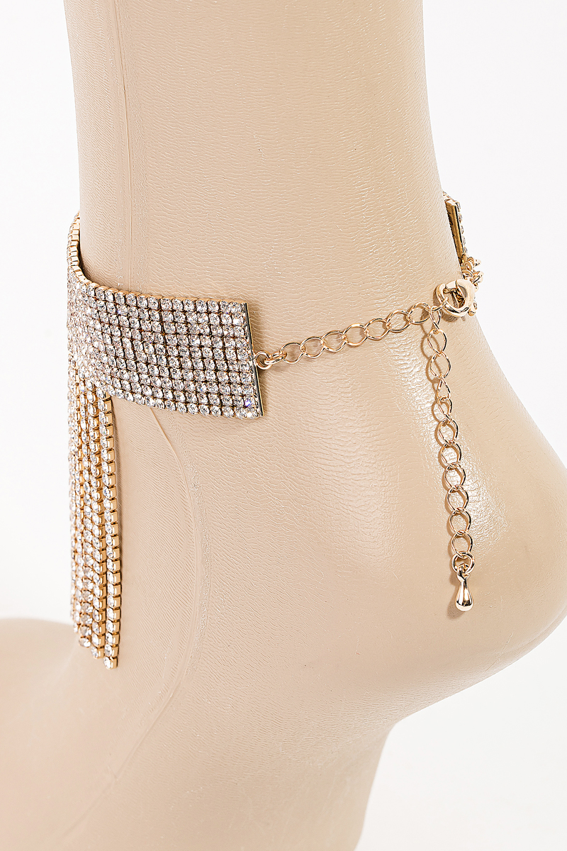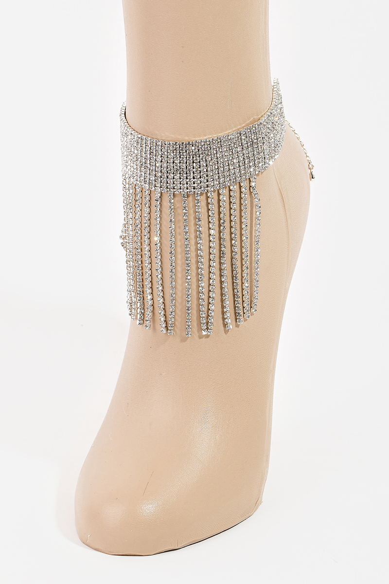 • This anklet brings a unique wide rhinestone fringe style. Celebrate individual style with this versatile, eye-catching addition.