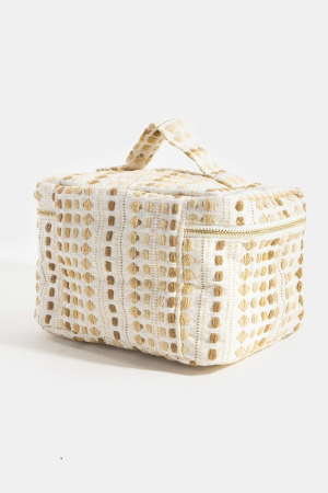 • Textured Cream Makeup Case Cosmetic Bag