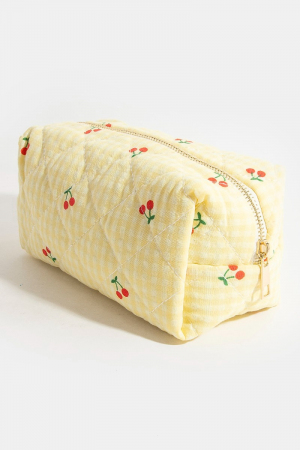 • Cherry Fruit Print Yellow Cosmetic Bag