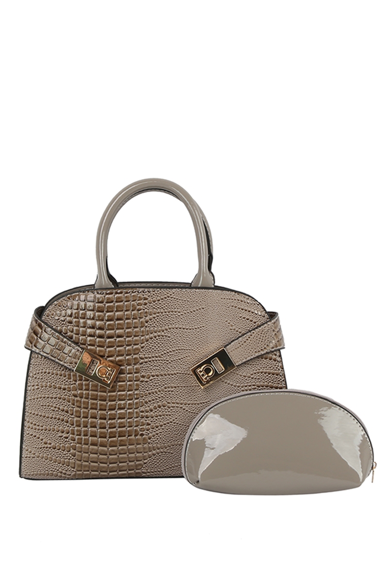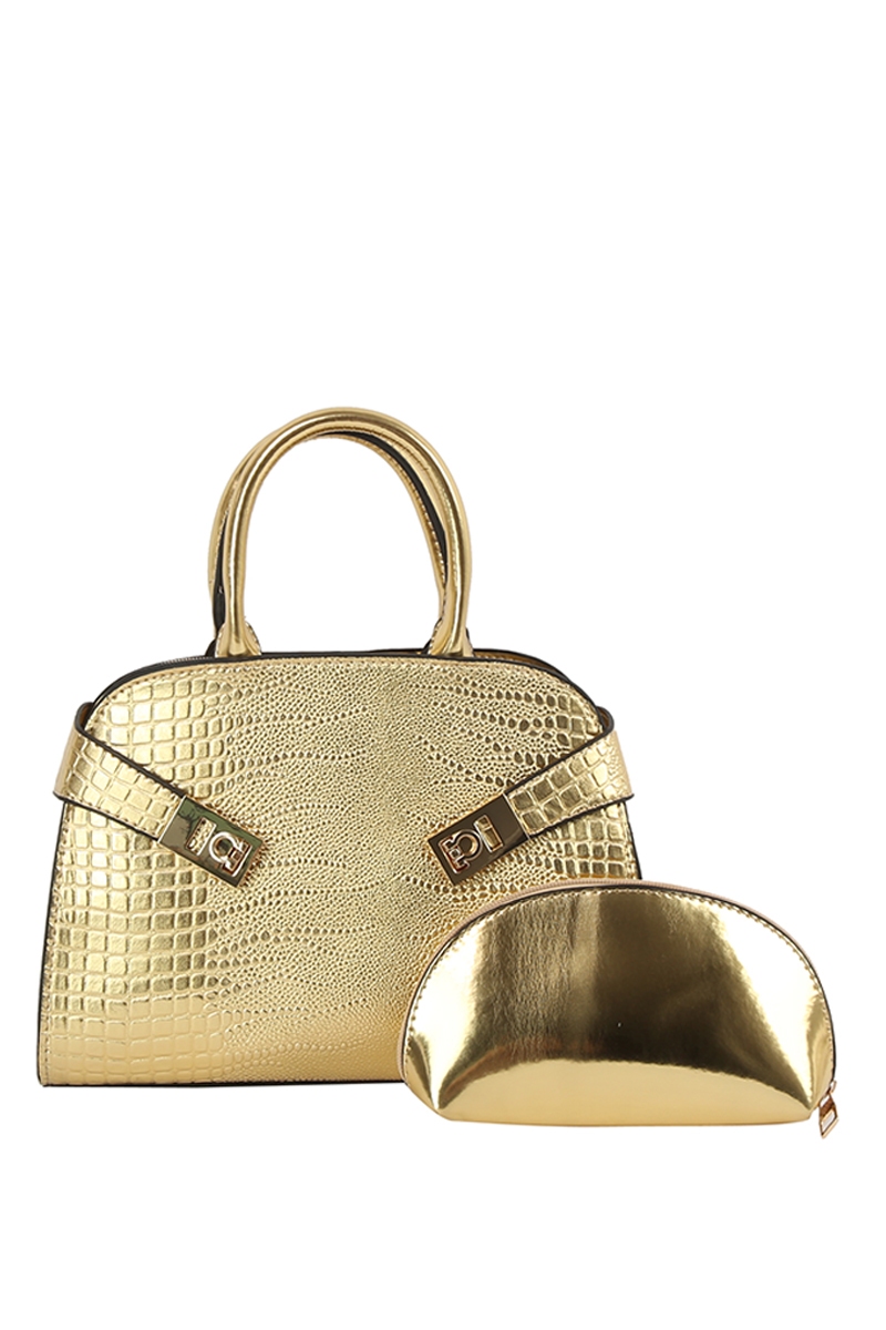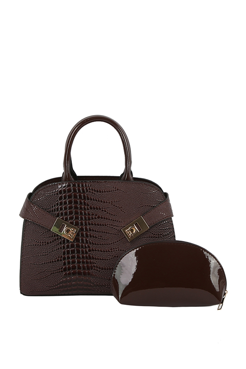 - This hand bag adds a modern alligator leather 2 in 1 dome satchel style. Immerse yourself in the details of design, as this hand bag effortlessly becomes a conversation starter.