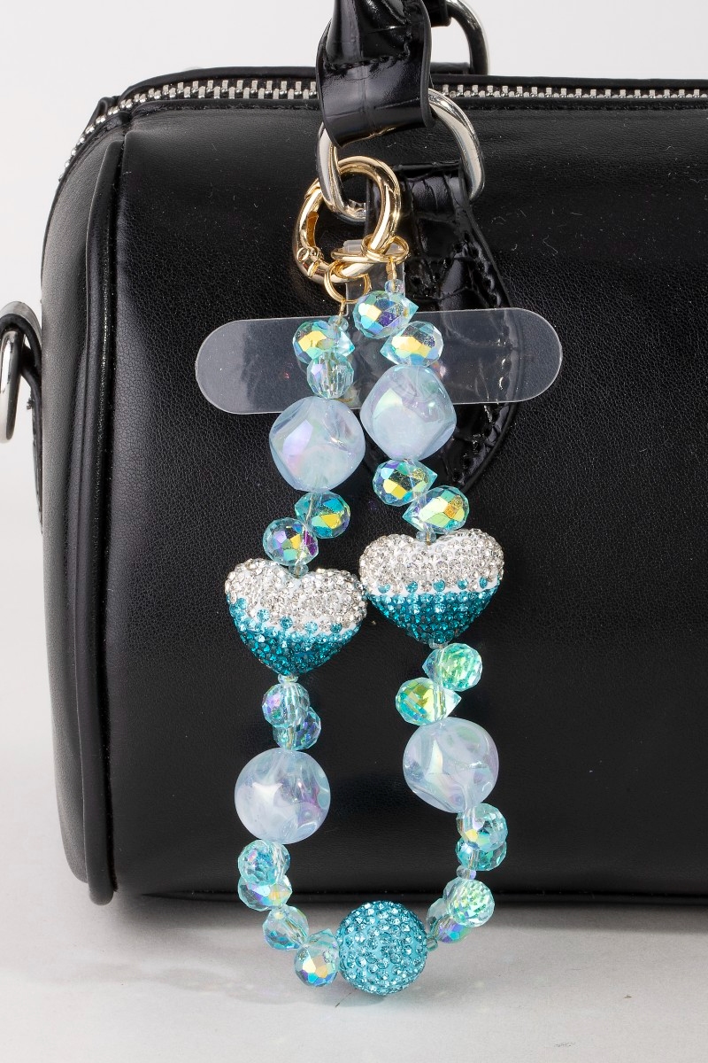 - This bag charm displays a vibrant assorted pave hearts beaded style. Immerse yourself in the world of understated glamour as this bag charm effortlessly exudes timeless appeal.