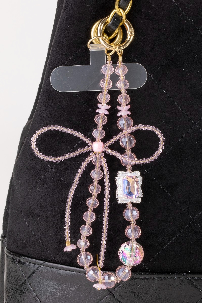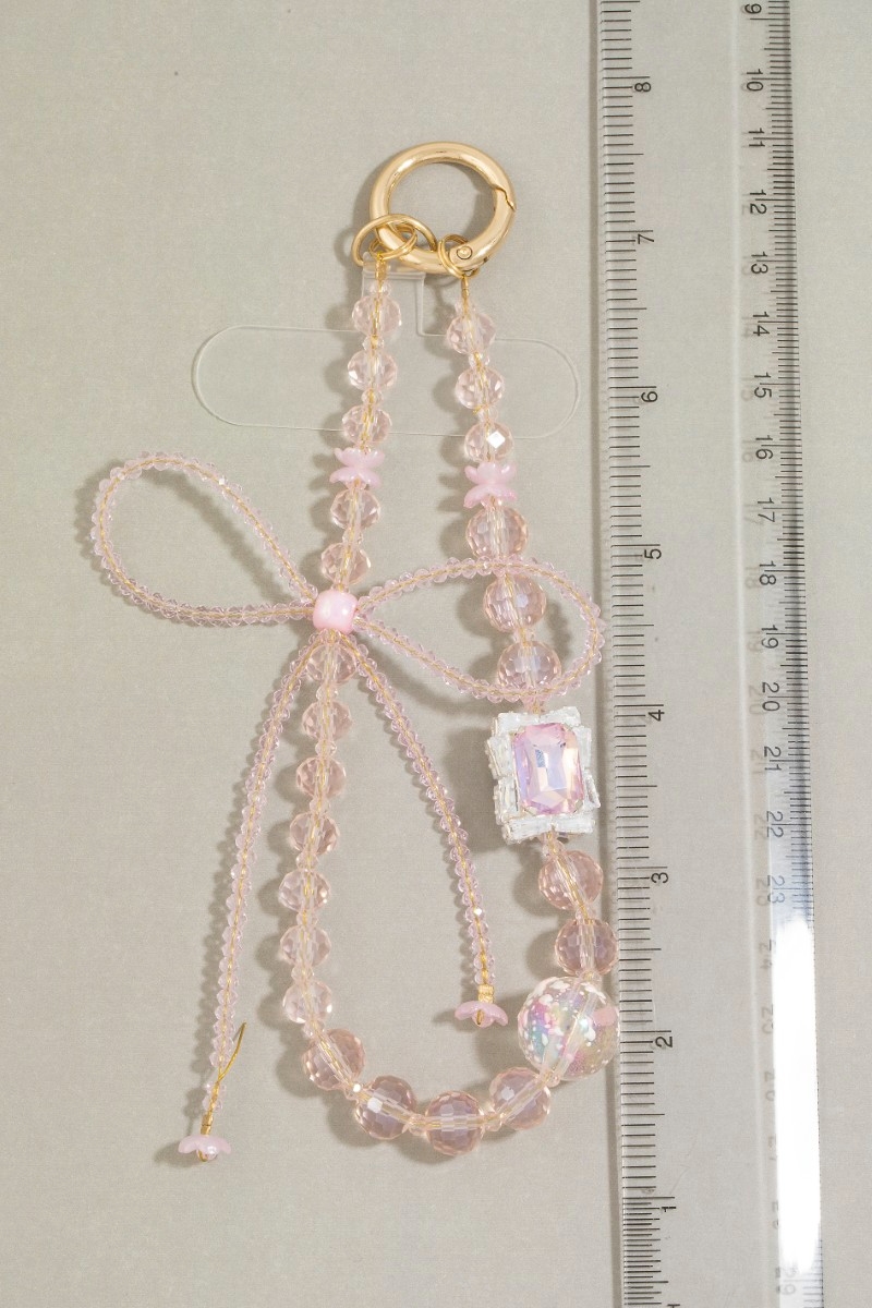 - This bag charm showcases a unique assorted crystal beaded ribbon bow style. Redefine your look effortlessly with this standout, on-trend piece.