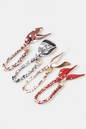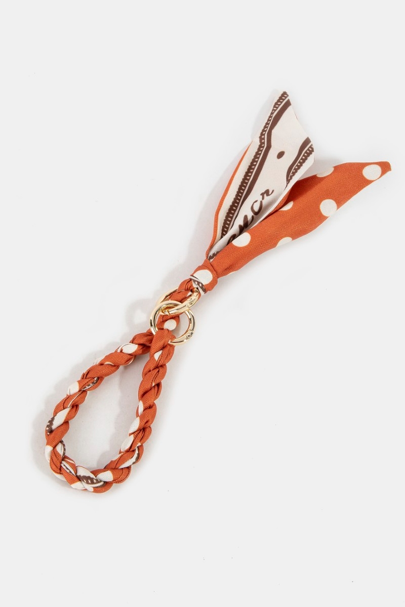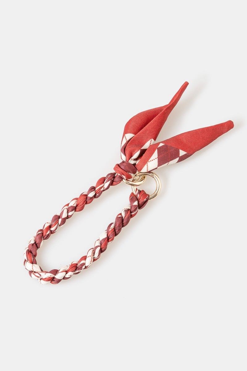 - This bag charm brings a unique braided bandana style. Elevate your ensemble with this bag charm that effortlessly captures the essence of refined fashion.