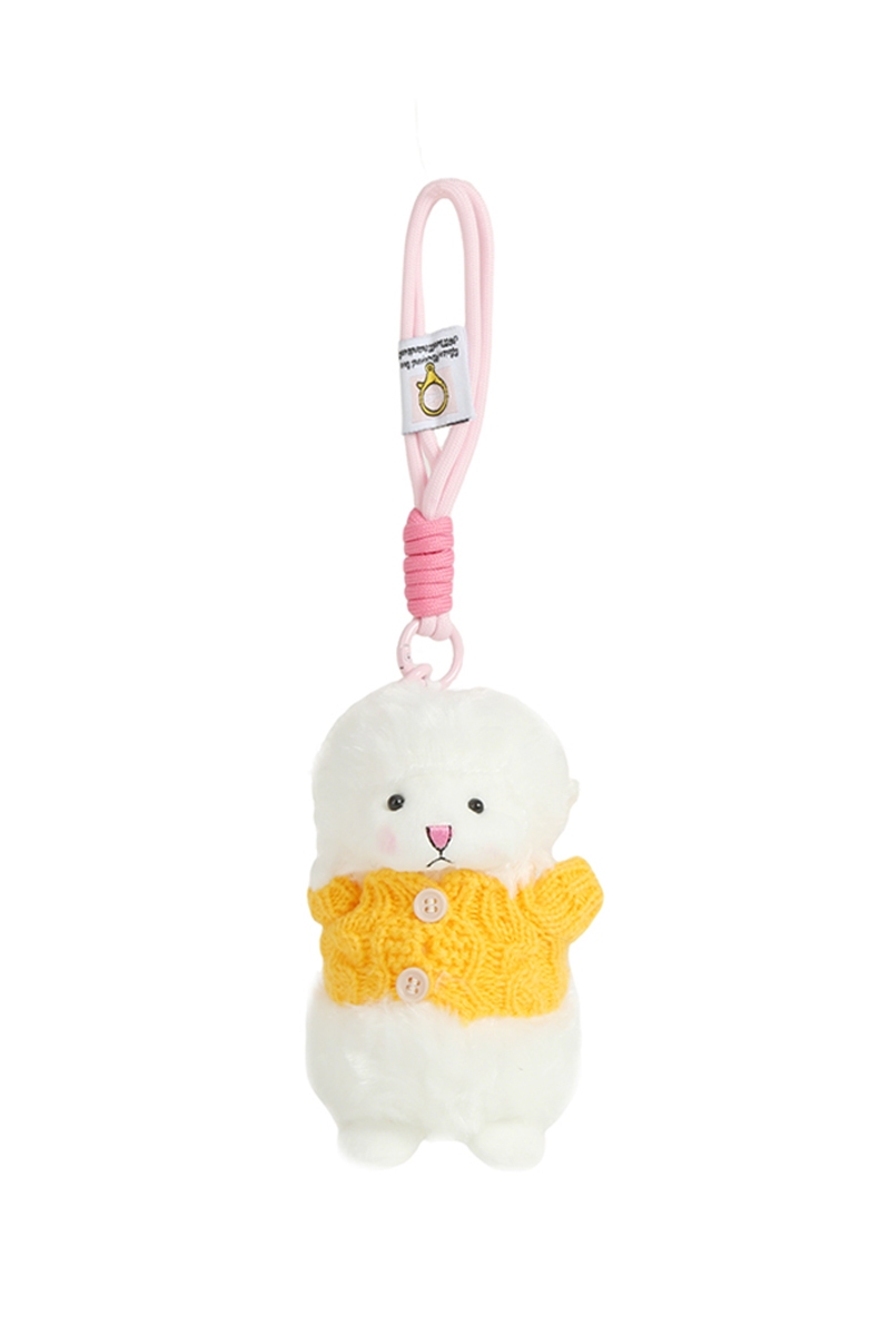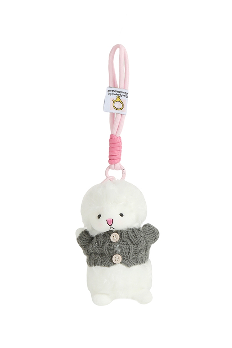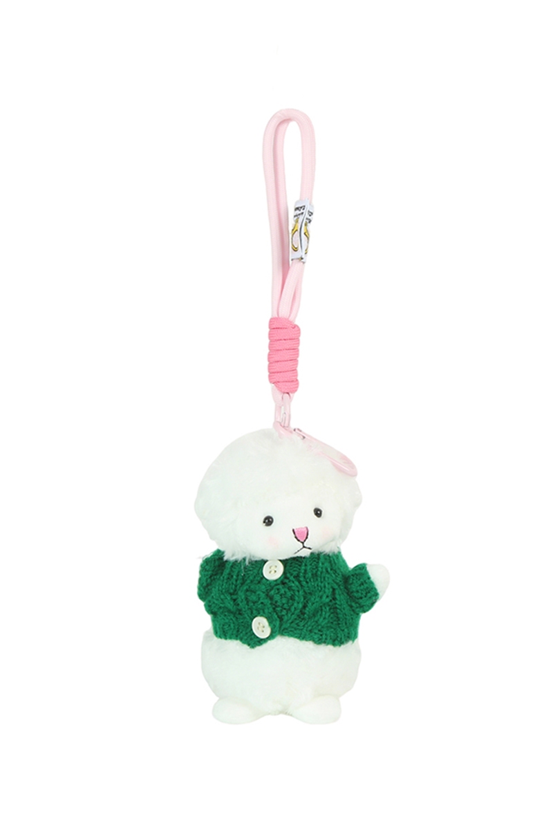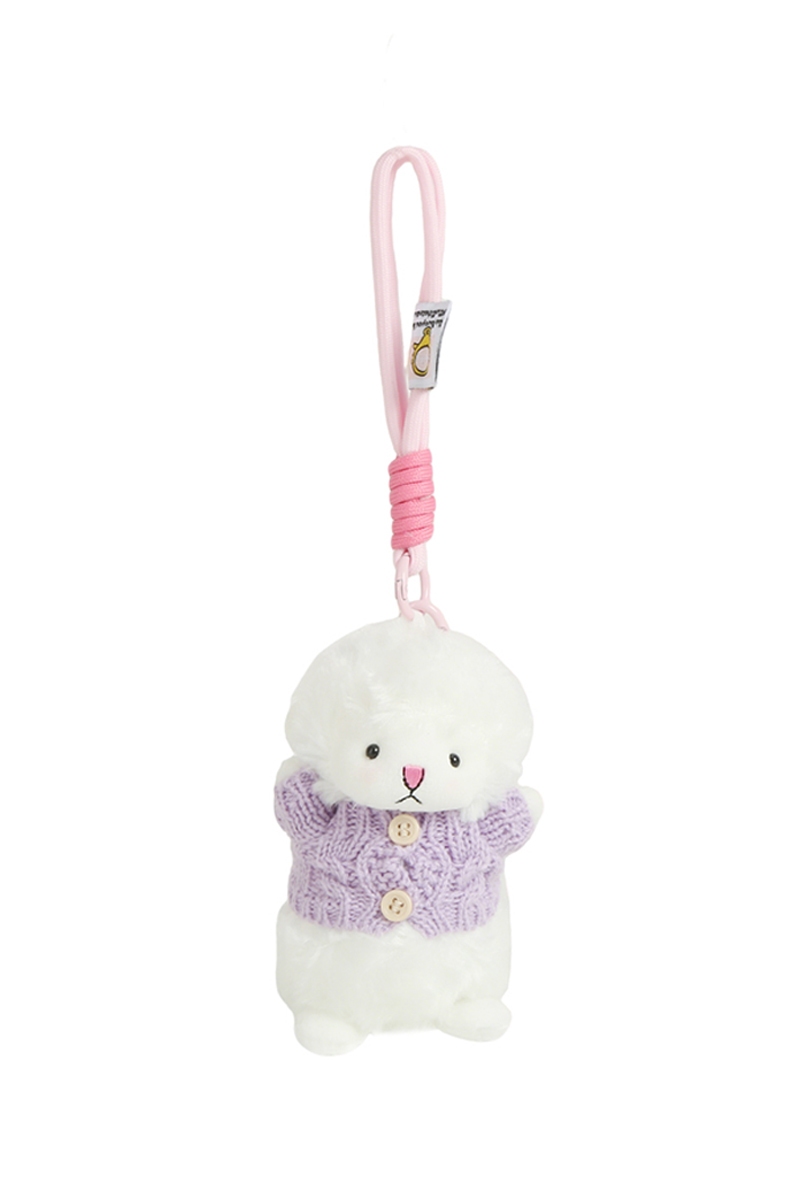 - This bag charm features a fashionable crochet outfit sheep and cord style. Experience a subtle blend of modernity and classic charm as this bag charm effortlessly adorns your ensemble.