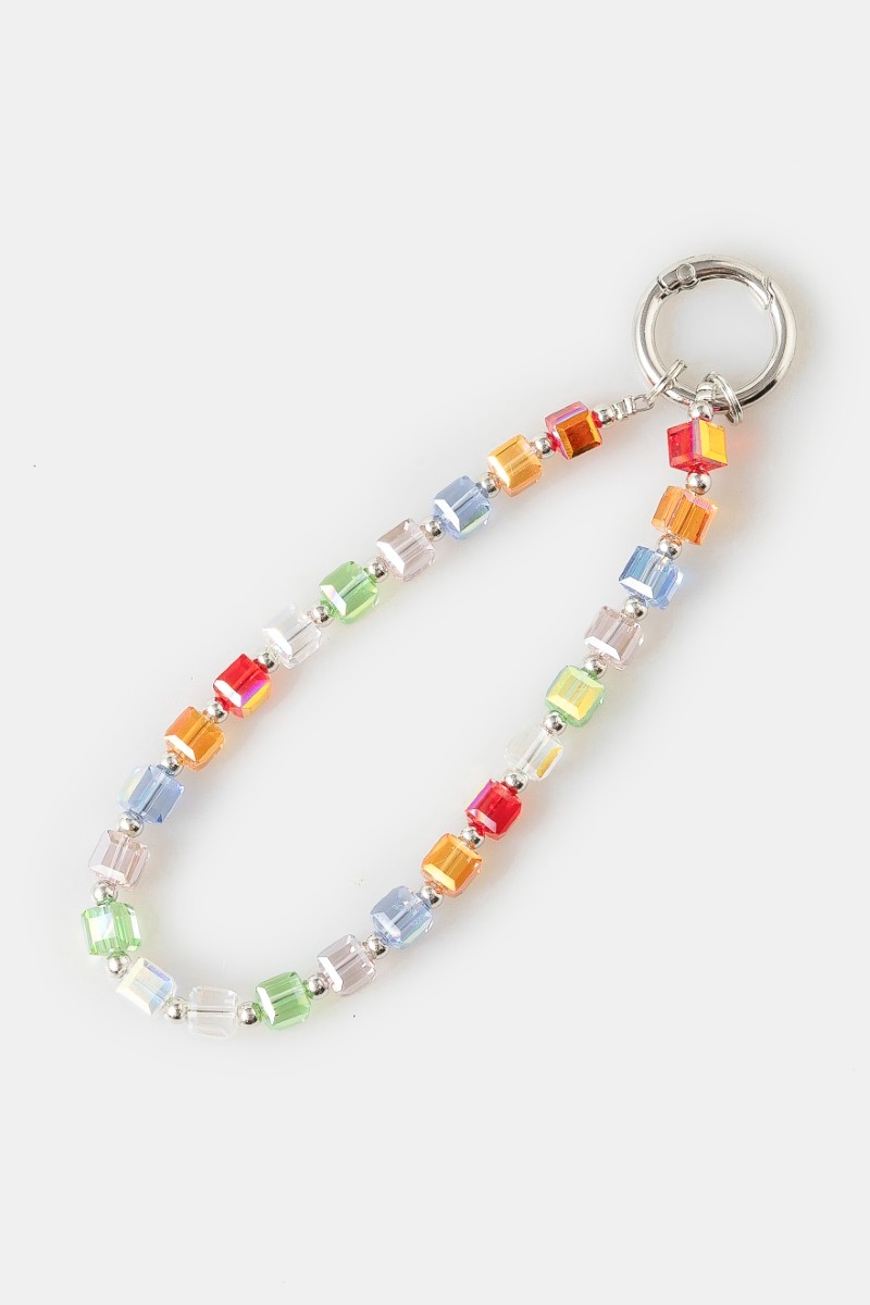 • This bag chain brings a luxurious metallic and plastic cube beaded style. Embark on a journey of sartorial refinement as this bag chain effortlessly complements your fashion sense.