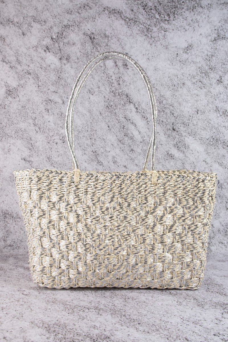 Multi Tone Straw Half Moon Round Handle Tote Bag