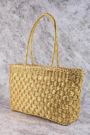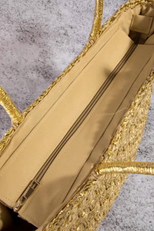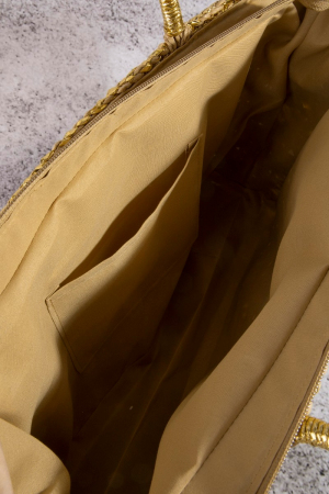 • This tote bag brings a luxurious basket weave style. Witness the transformative power of accessories as this piece effortlessly redefines your fashion narrative.