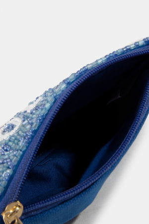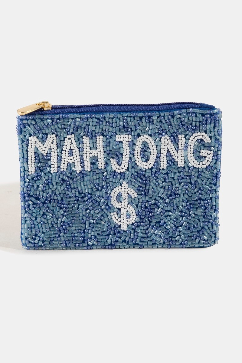 - This coin purse brings a luxurious blue mahjong money seed beaded style. Experience the joy of accessorizing with this piece that effortlessly combines versatility and charm.