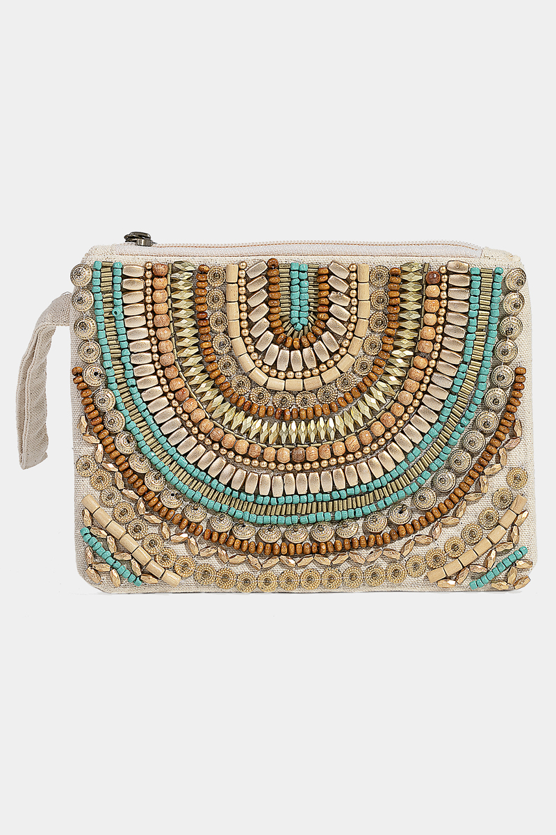 - This bag features a fashionable boho assorted beaded pattern cosmetic style. Witness the perfect fusion of style and functionality as this bag effortlessly complements your lifestyle.