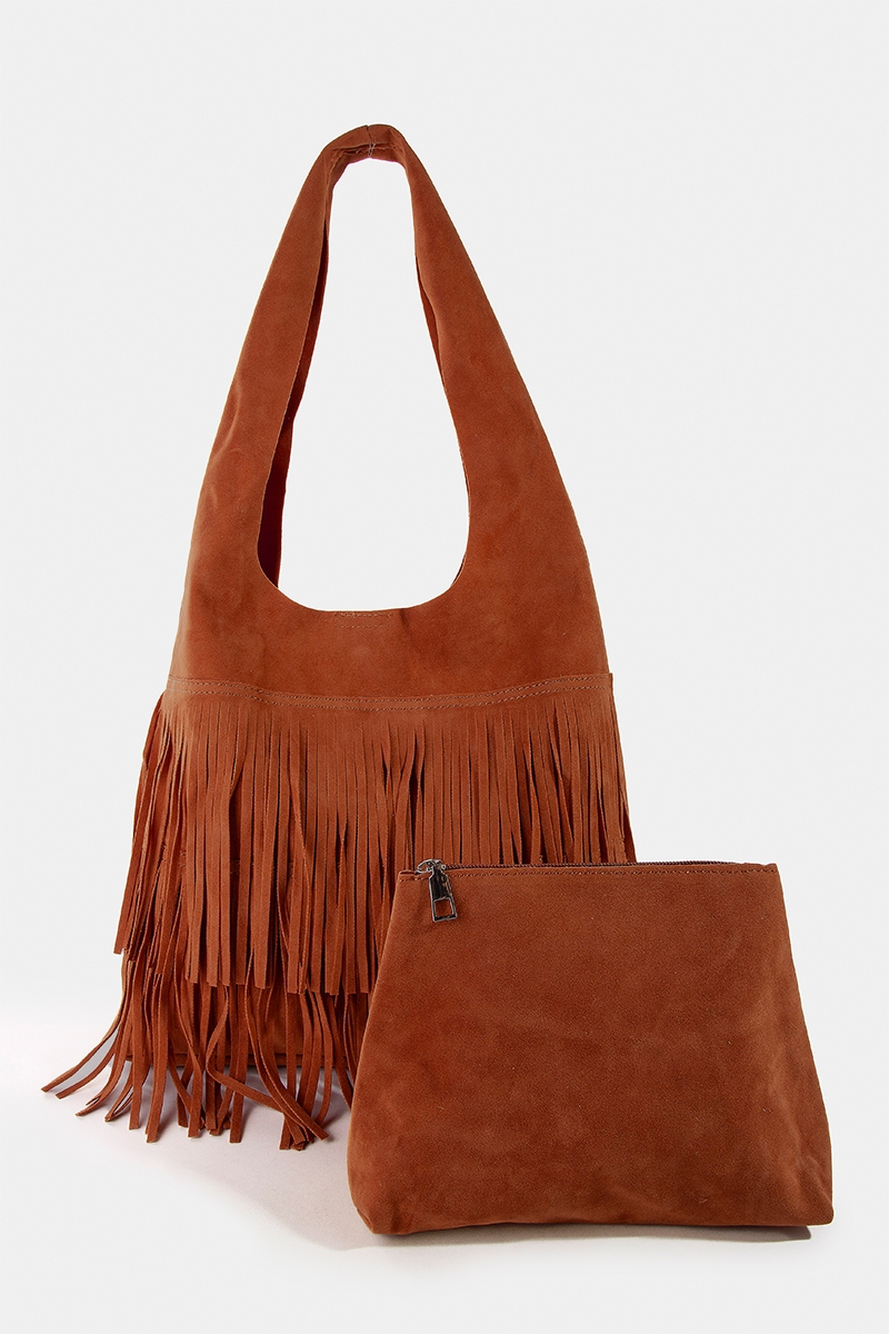 • This hand bag brings a luxurious layered fringe detail suede hobo bag style. Immerse yourself in fashion finesse with this statement hand bag.