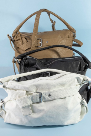 - This hand bag showcases a timeless buckle strap detail leather handbag style. Immerse yourself in the details of design, as this hand bag effortlessly becomes a conversation starter.