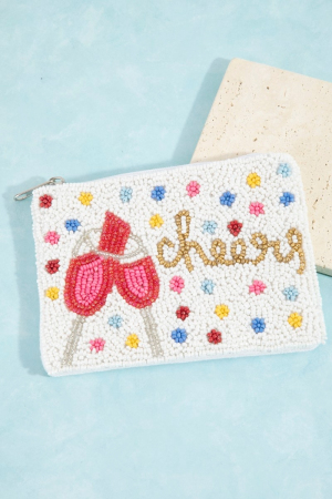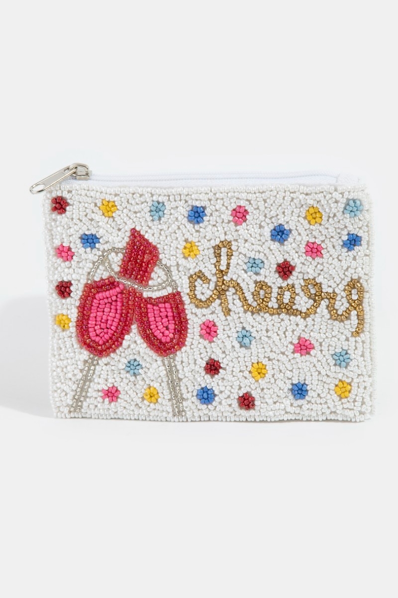 • This coin purse brings a stunning cheers toast seed beaded style. Revel in the intricate design that effortlessly distinguishes this coin purse, making it a statement piece.