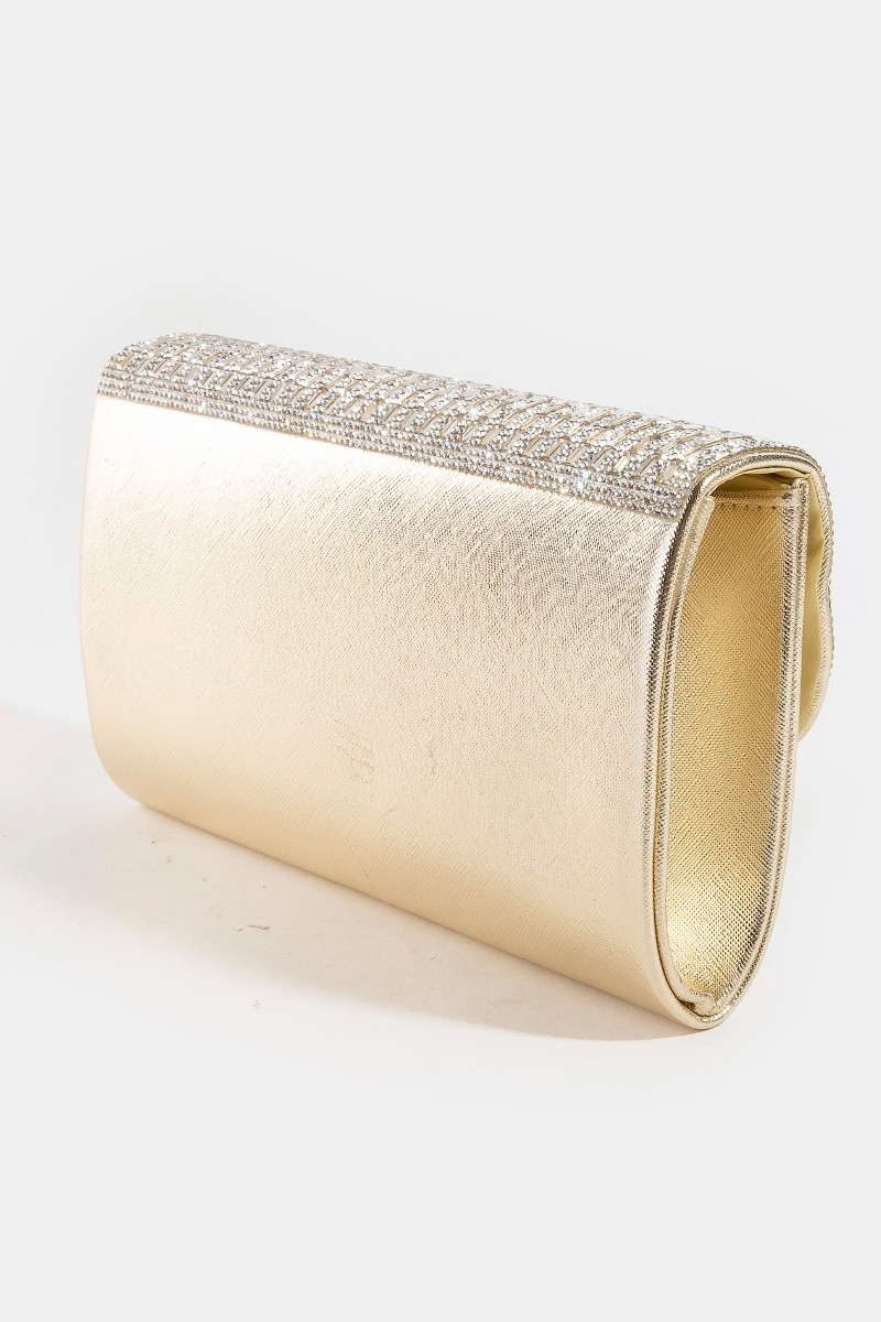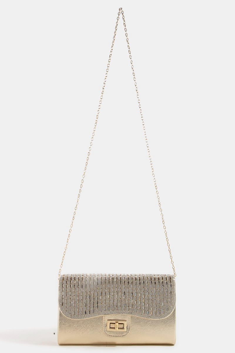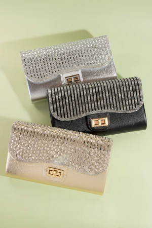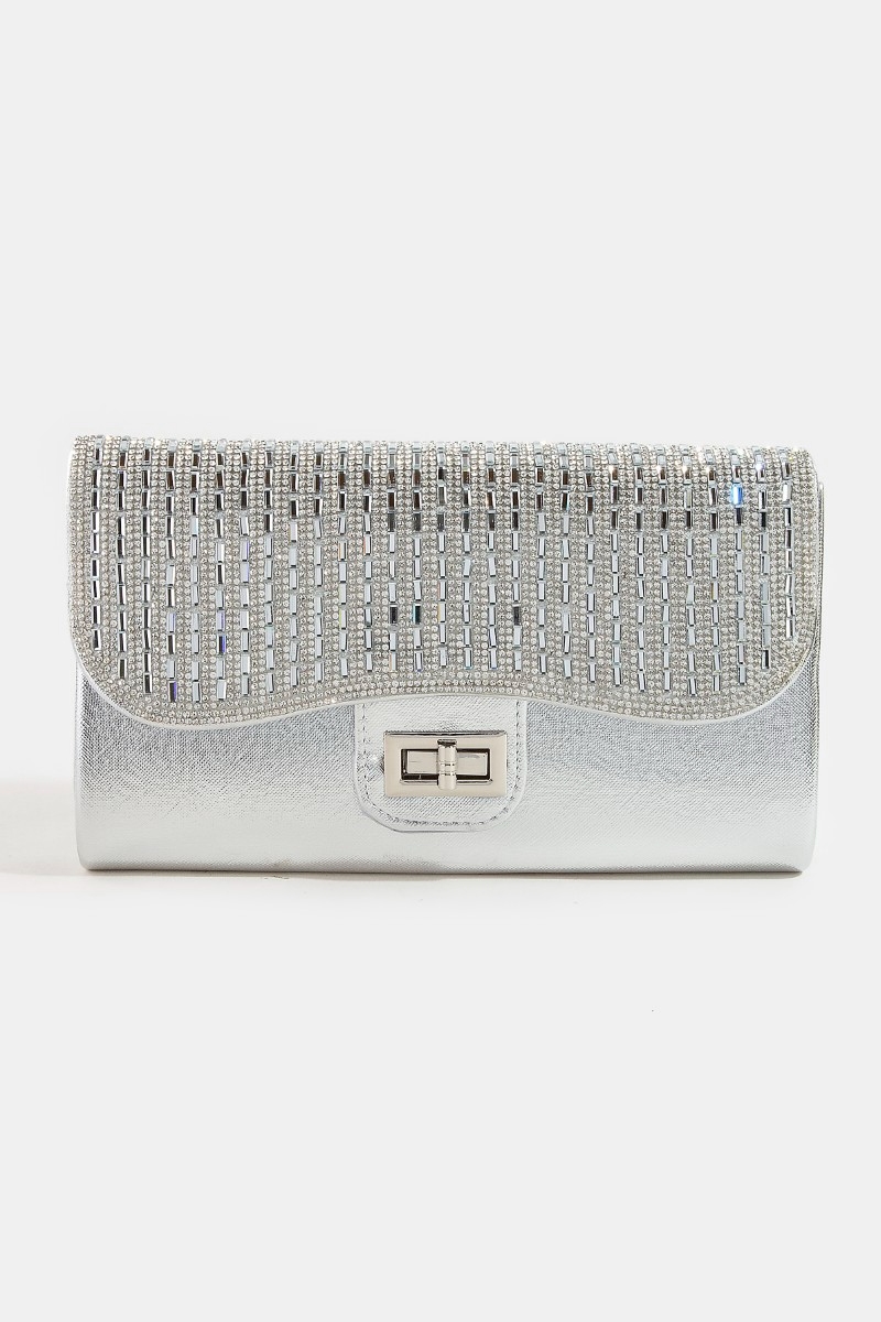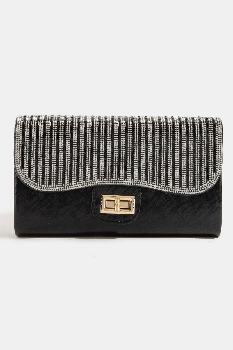 • This clutch bag adds a modern rhinestone studded evening style. Embark on a journey of sartorial refinement as this clutch bag effortlessly complements your fashion sense.