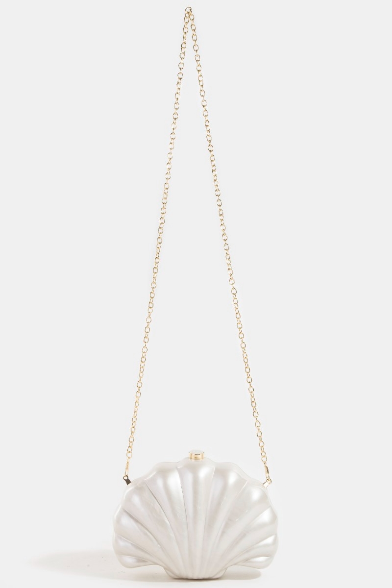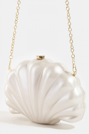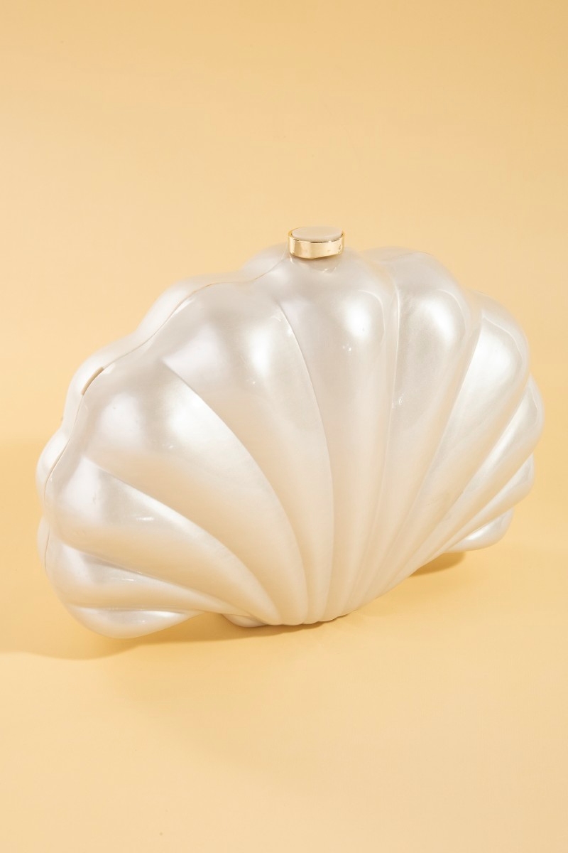 - This clutch bag showcases a unique seashell pearl style. Savor the allure of detailed craftsmanship in this exquisite clutch bag.