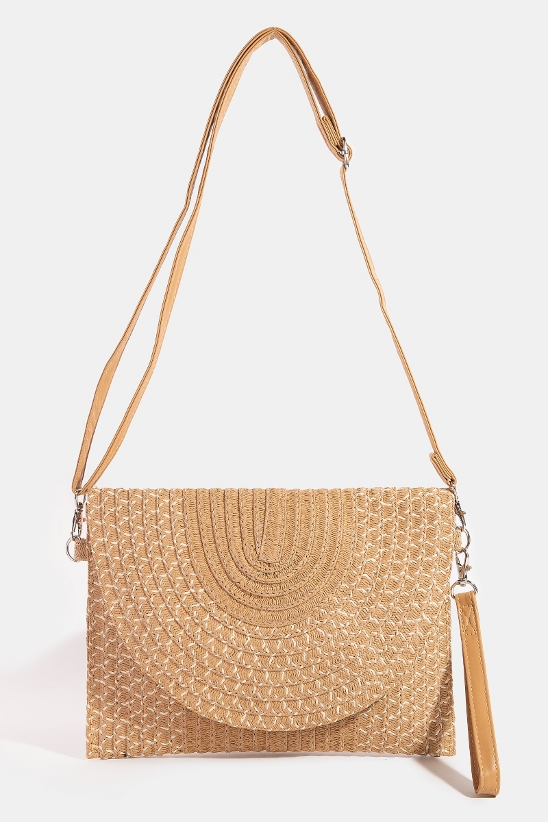 Straw Woven Half Moon Clutch Bag