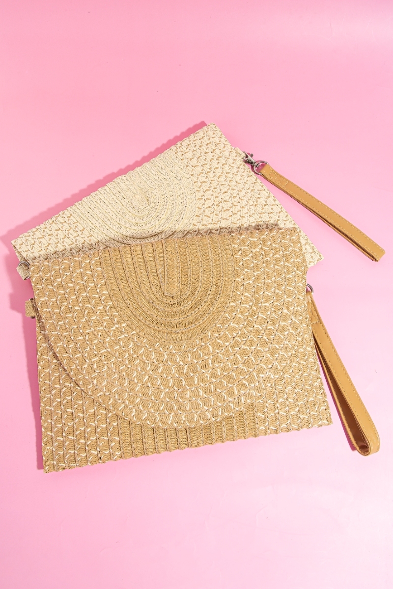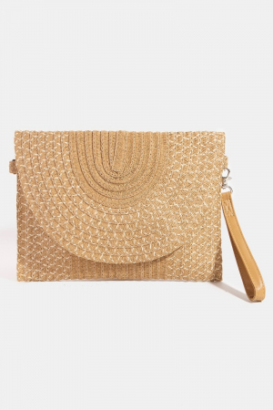 Straw Woven Gold Accents Clutch Bag