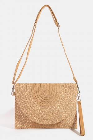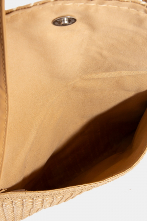 Metallic Straw Woven Half Moon Clutch Bag