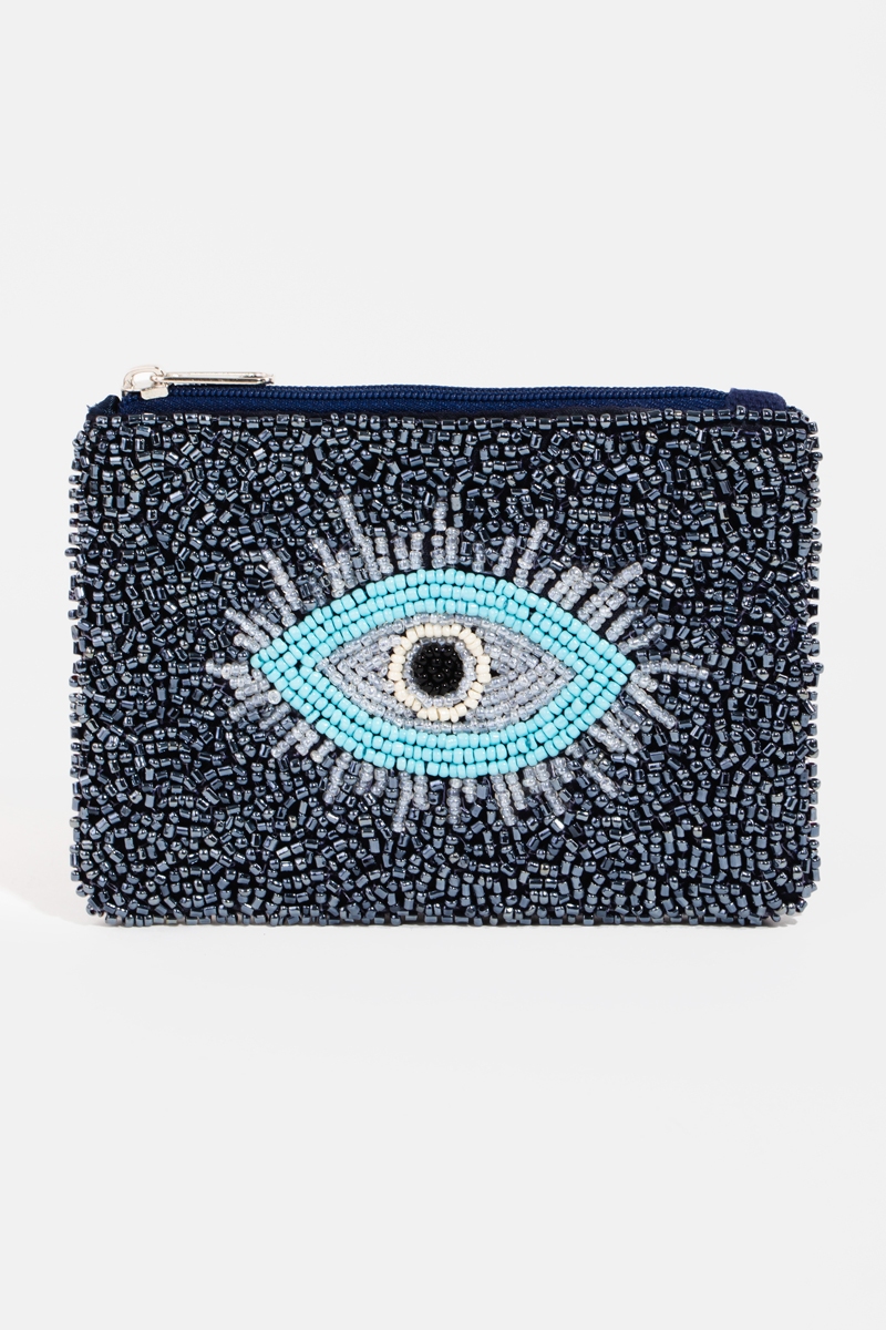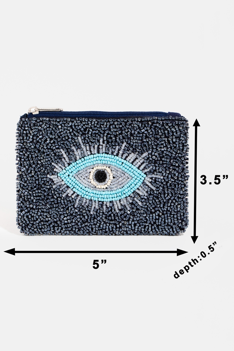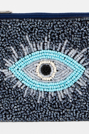 • This coin purse displays a fashionable blue seed beaded eye style. Discover the perfect balance of subtlety and flair as this coin purse effortlessly completes your look.