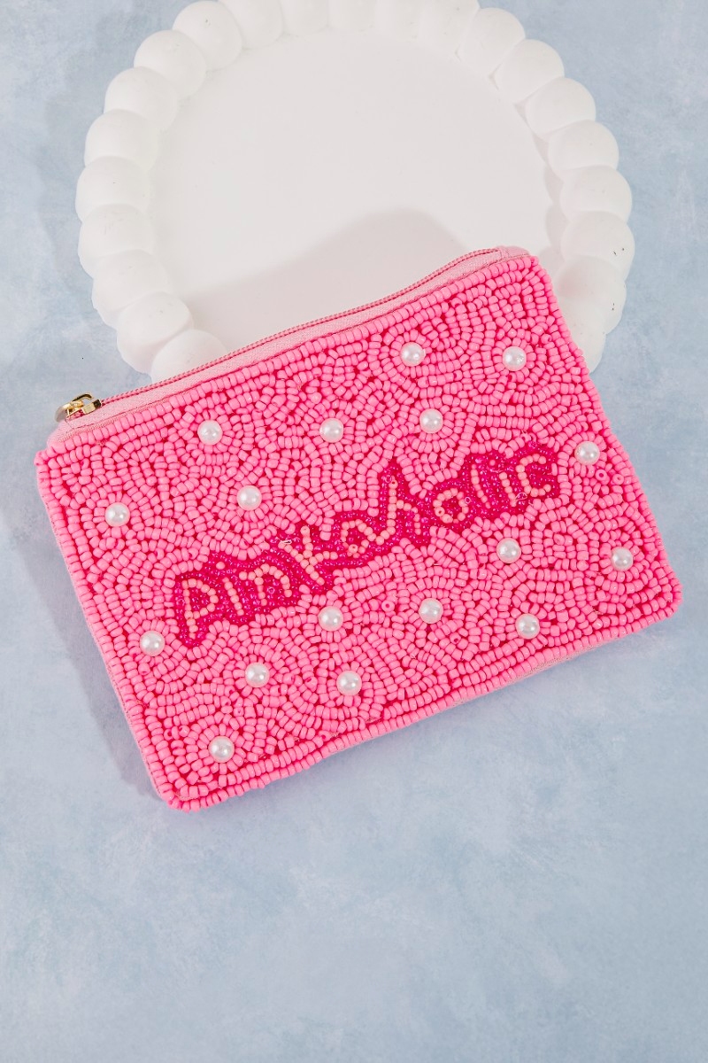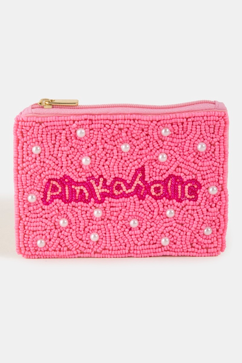 - This coin purse brings a stunning pinkaholic seed beaded style. Immerse yourself in the world of understated glamour as this coin purse effortlessly exudes timeless appeal.