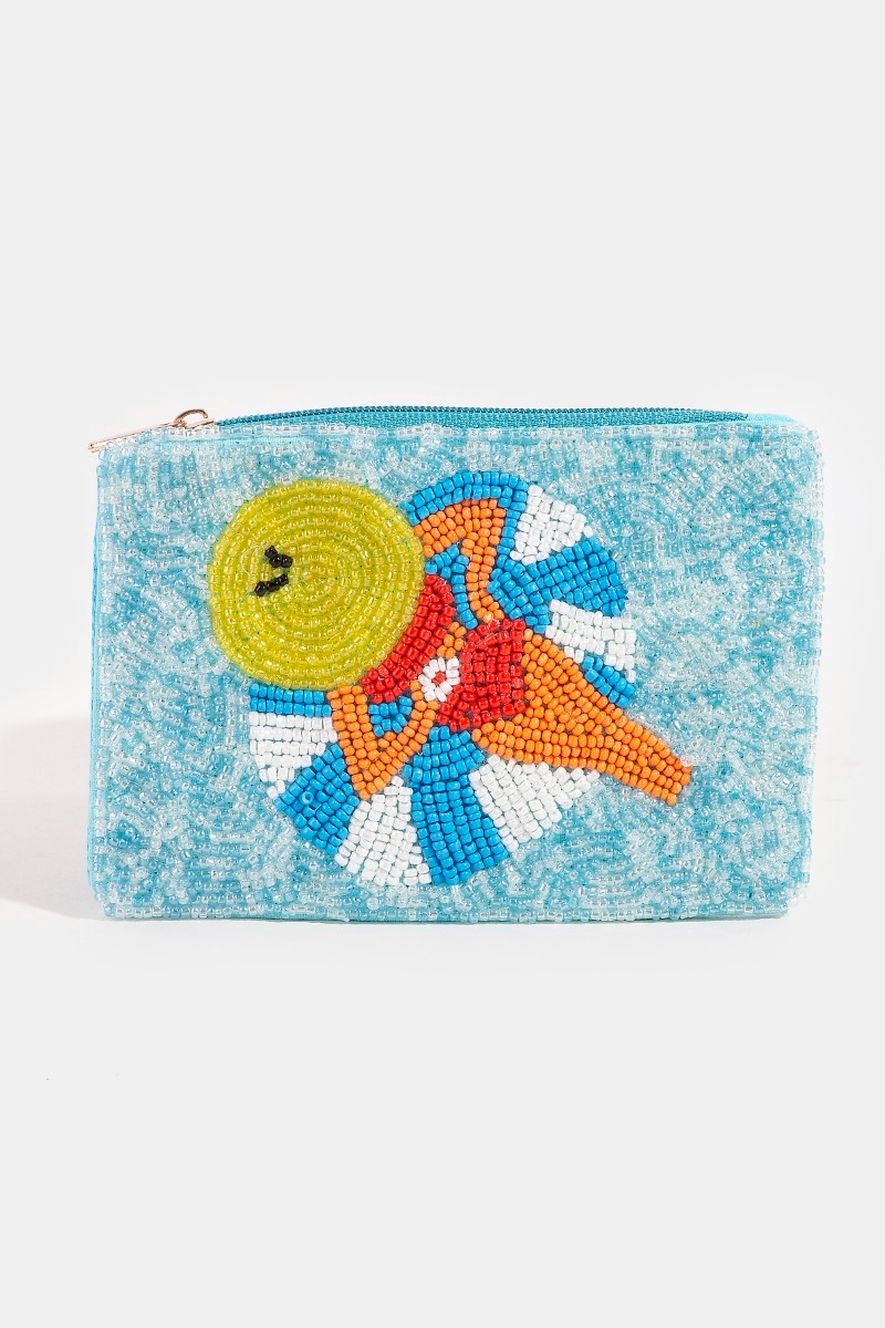 - This coin purse features a fashionable sunbathing pool lady seed beaded style. Unveil modern elegance with this subtly intricate coin purse.