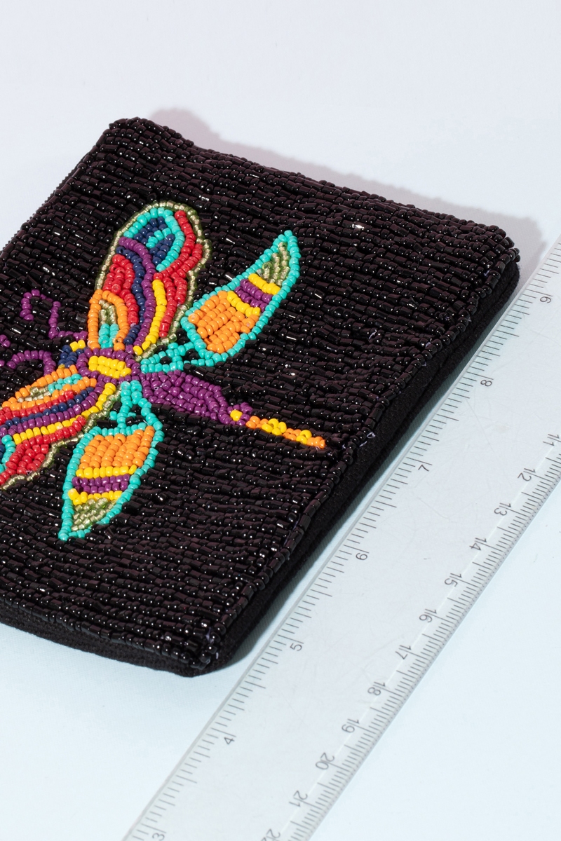 • This showcases a timeless colorful dragon fly beaded coin purse style. Savor the craftsmanship that goes beyond the ordinary, as this effortlessly captivates attention.