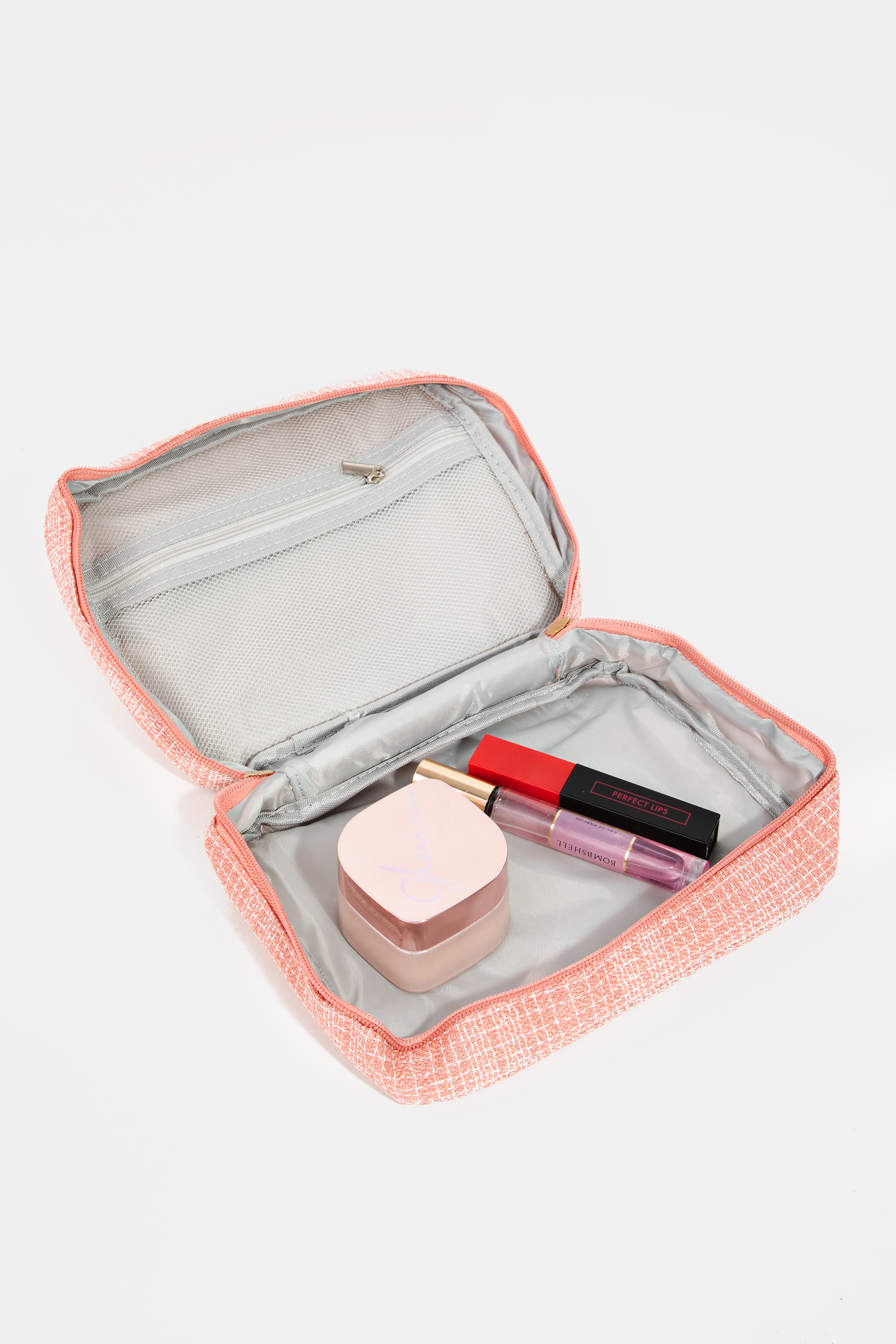 Textured Cream Makeup Case Cosmetic Bag