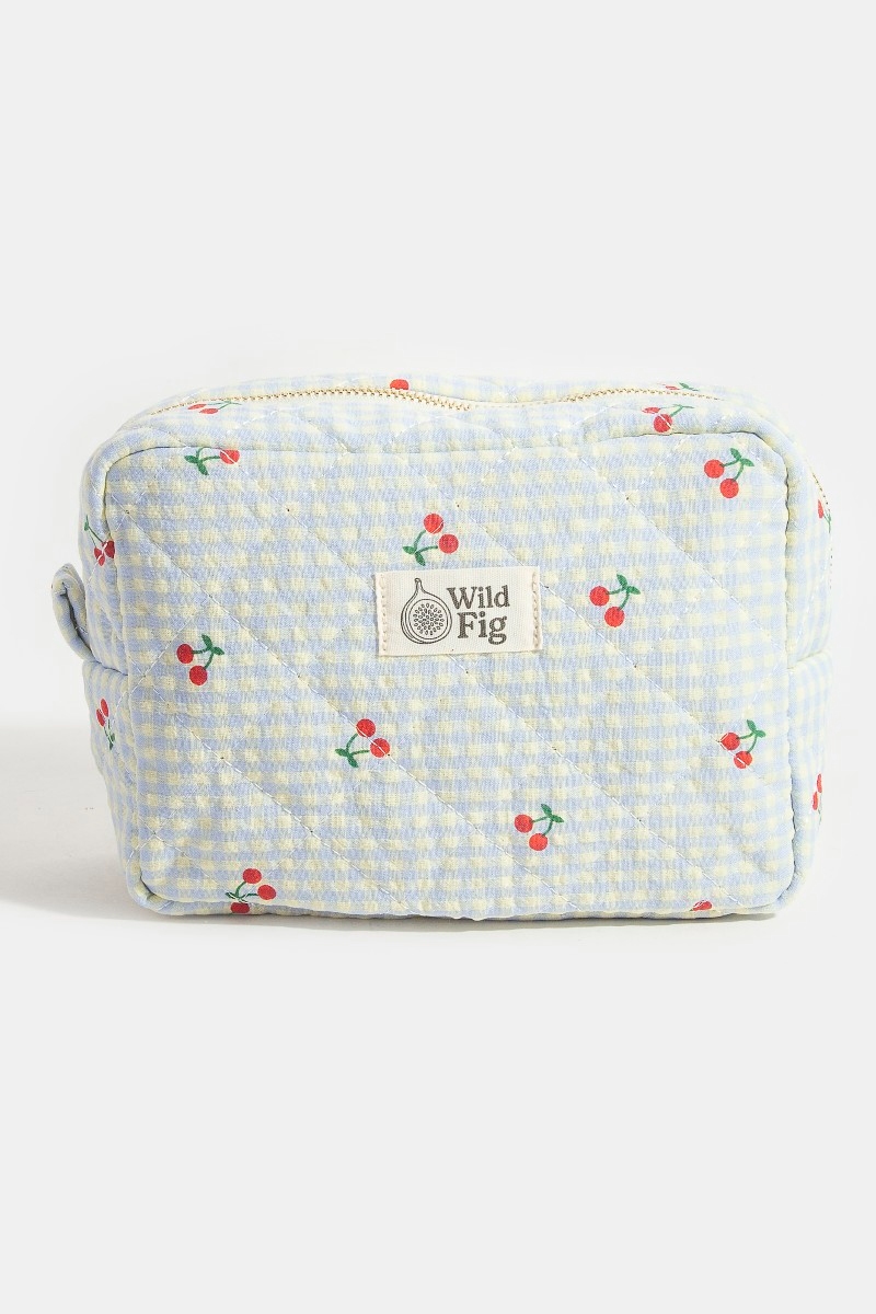 - This bag features a fashionable multi cherries cosmetic style. Indulge in the artistry of accessorizing with this unique piece.