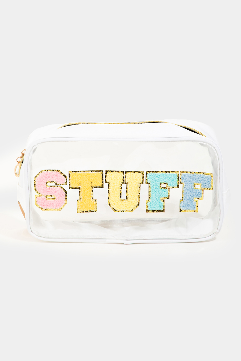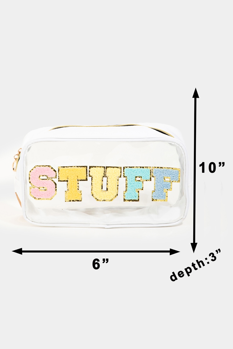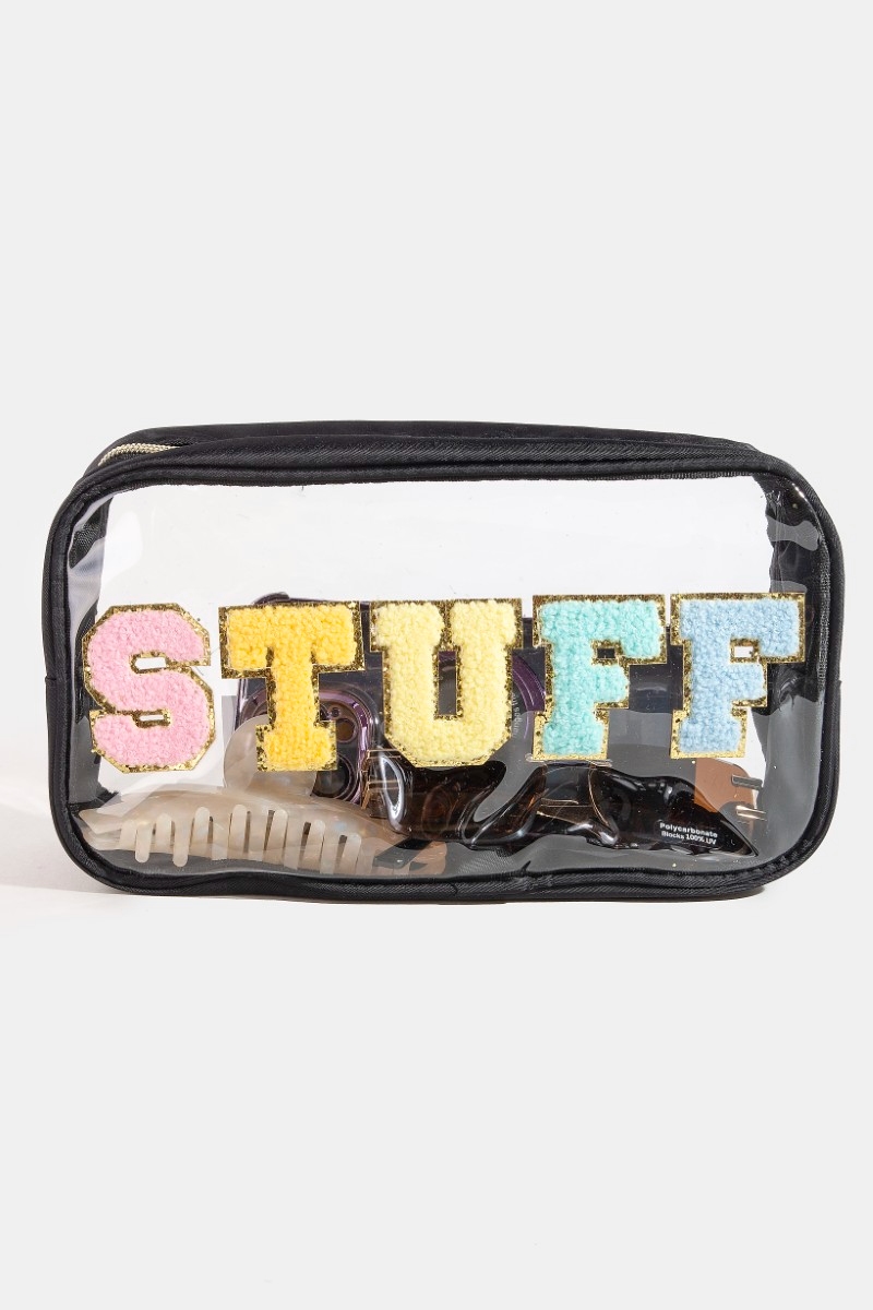 - This brings a luxurious see through stuff print cosmetic bag style. Indulge in the allure of exquisite craftsmanship as this effortlessly adds a touch of luxury to your attire.
