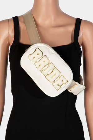 - This crossbody bag displays a fashionable fuzzy glitter bride style. Immerse yourself in the details of design, as this crossbody bag effortlessly becomes a conversation starter.