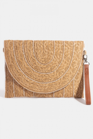 - This crossbody bag showcases a timeless stitched straw envelope style. Revel in the intricate design that effortlessly distinguishes this crossbody bag, making it a statement piece.
