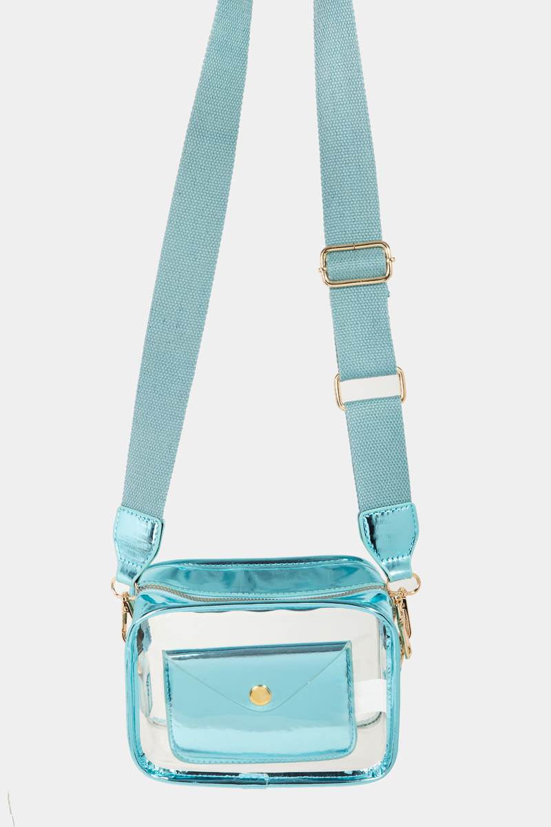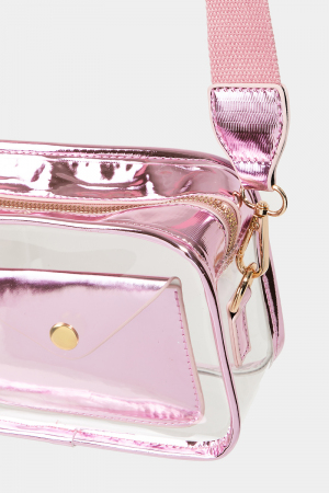 • This crossbody bag showcases a timeless transparent rectangle style. Indulge in the artistry of accessorizing with this unique piece.
