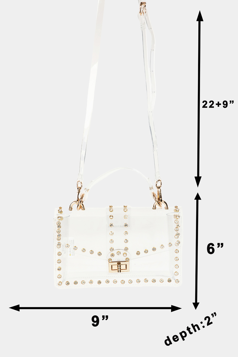 • This introduces a stunning transparent rectangle rhinestone trim bag style. Discover the perfect balance of subtlety and flair as this effortlessly completes your look.