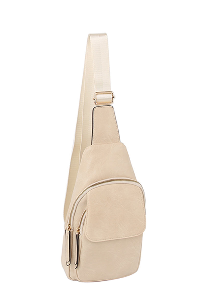 • This sling bag displays a vibrant leather fashion flap style. Experience the joy of accessorizing with this piece that effortlessly combines versatility and charm.
