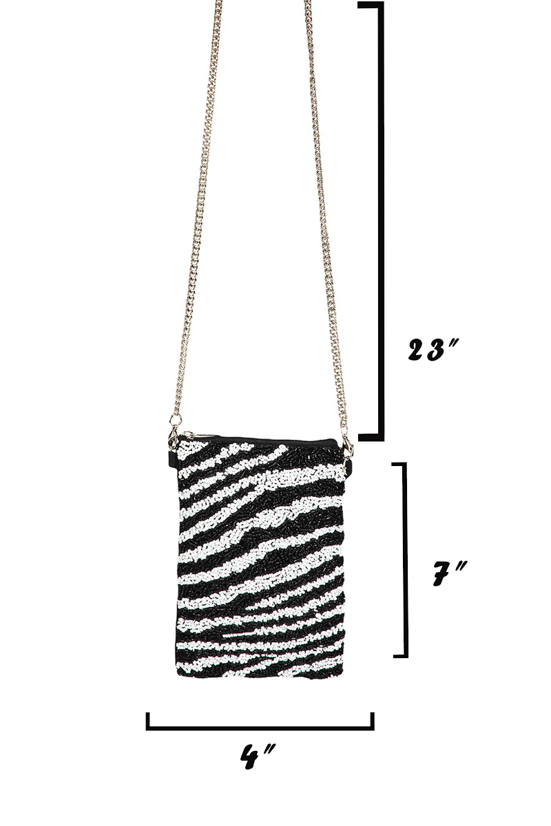 - This crossbody bag introduces a unique zebra stripe pattern bead rectangle pouch bag style. Savor the craftsmanship that goes beyond the ordinary, as this crossbody bag effortlessly captivates attention.