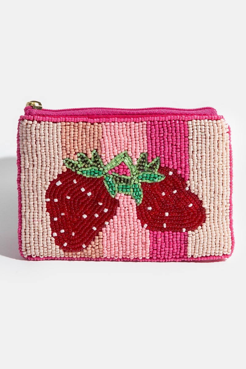 - This wallet features a fashionable double strawberry striped seed beaded coin purse style. Delight in the nuanced details that make this wallet a testament to fine design and impeccable taste.