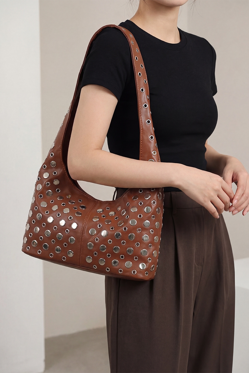 - This shoulder bag introduces a stunning fashion studded style. Savor the craftsmanship that goes beyond the ordinary, as this shoulder bag effortlessly captivates attention.