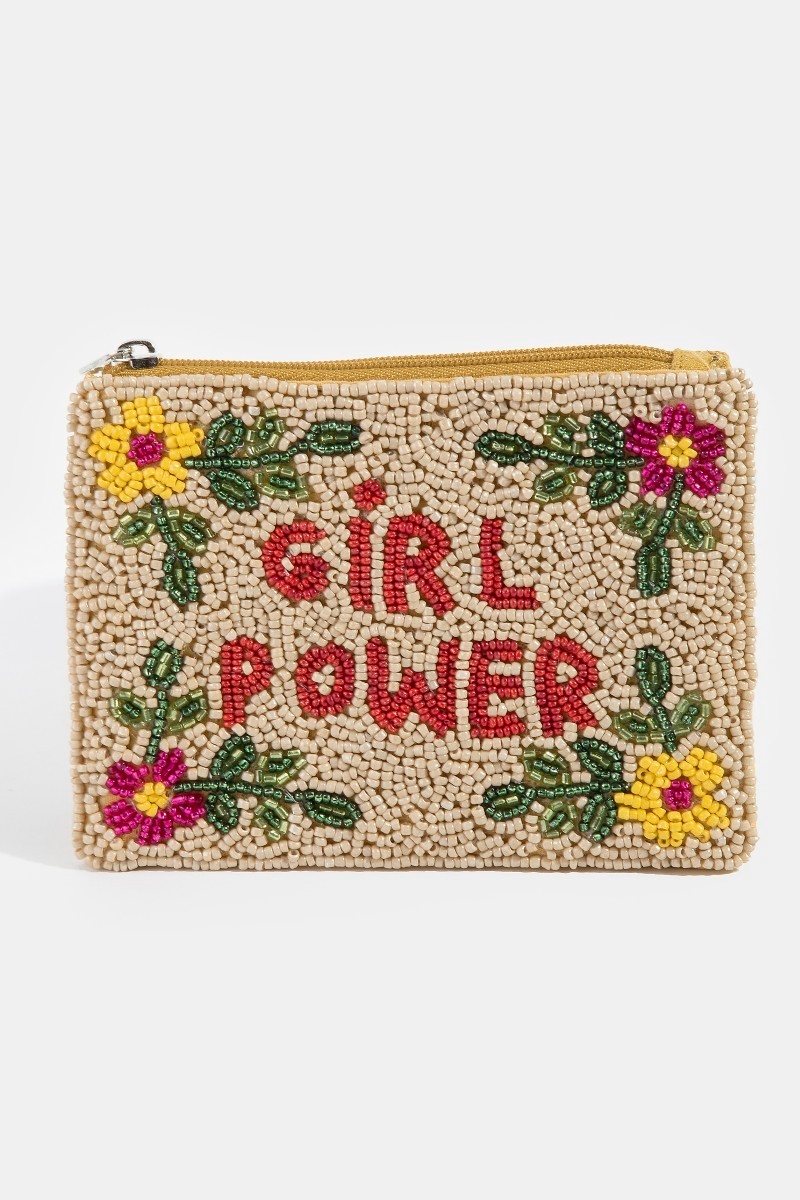 Girl Power Beaded Zip Coin Purse