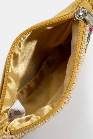 • This coin purse displays a vibrant floral border girl power seed beaded style. Redefine your look effortlessly with this standout, on-trend piece.