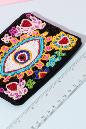 - This displays a fashionable flower heart evil eye beaded coin purse style. Explore a blend of classic charm and contemporary flair.