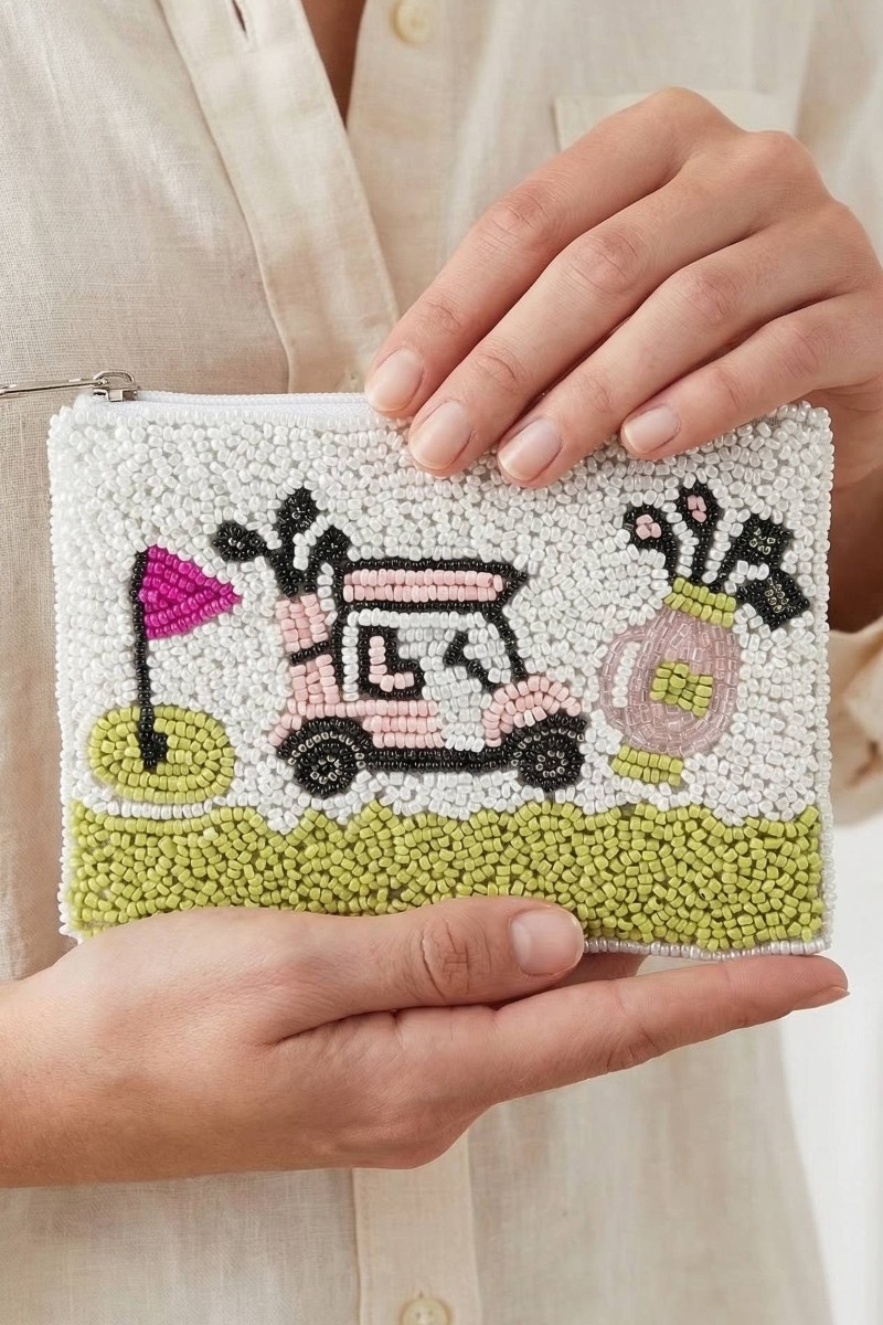 - This coin purse introduces a stunning game day golfing theme seed beaded style. Delight in the nuanced details that make this coin purse a testament to fine design and impeccable taste.
