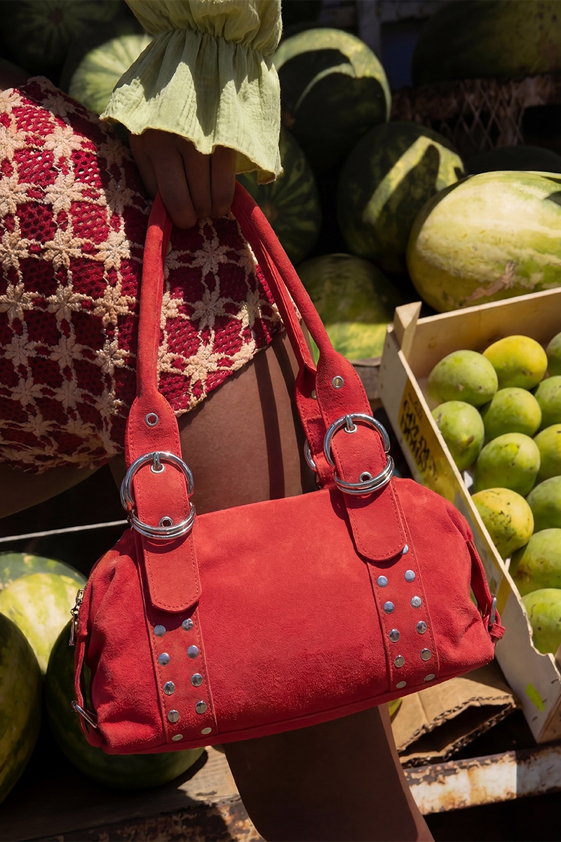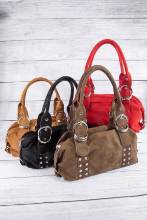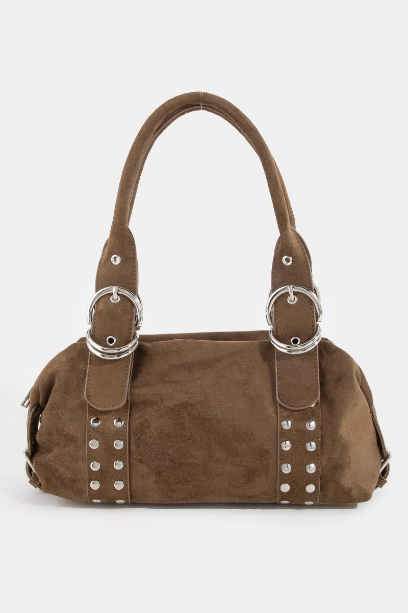 - This hand bag displays a vibrant grommet accent suede style. Discover the perfect balance of subtlety and flair as this hand bag effortlessly completes your look.