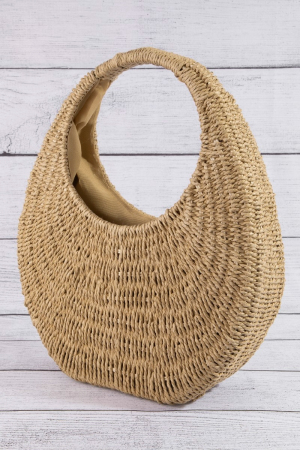 - This hand bag displays a vibrant basket weave round handbag style. Embark on a journey of sartorial refinement as this hand bag effortlessly complements your fashion sense.