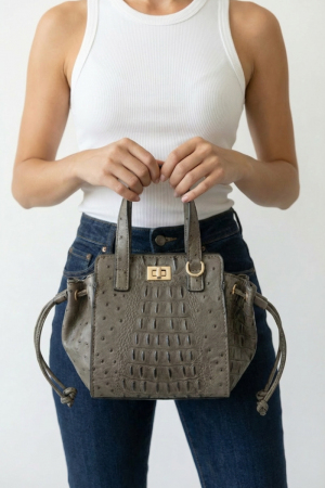 - This hand bag introduces a stunning drawstring leather style. Elevate your ensemble with this chic, timeless hand bag.