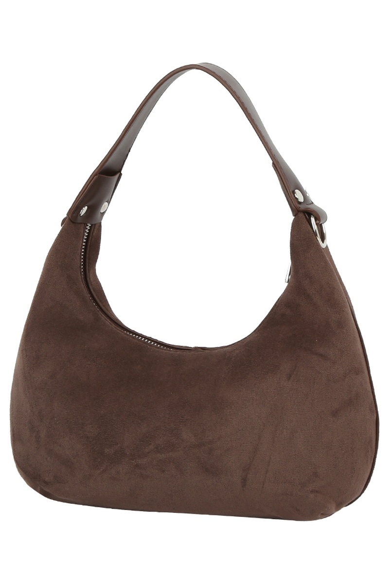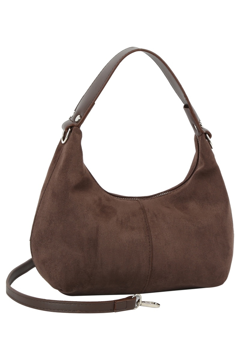 - This hand bag showcases a timeless faux suede panel style. Unveil a new dimension of sophistication as this hand bag effortlessly enhances the elegance of your ensemble.