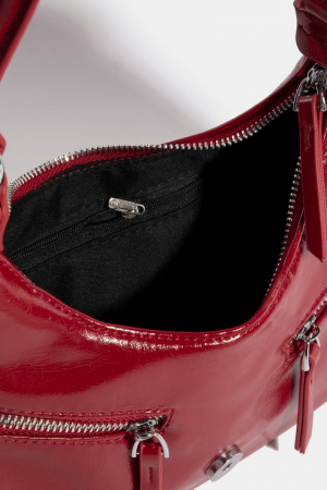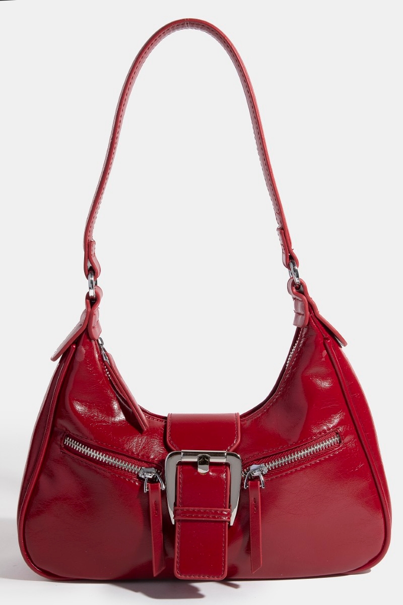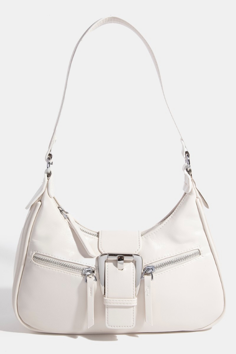 • This hand bag adds a modern large buckle triple zipper style. Indulge in the artistry of accessorizing with this unique piece.