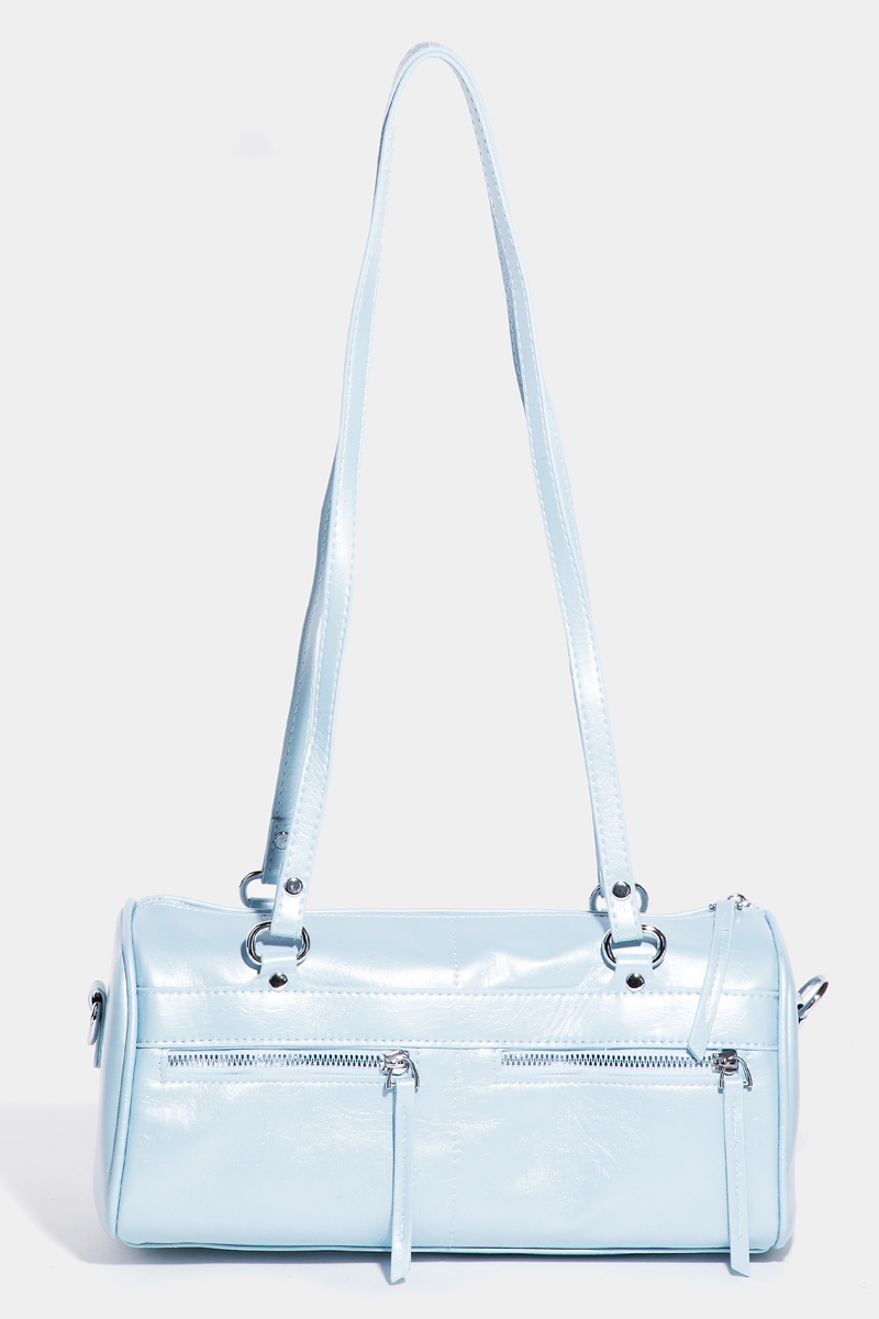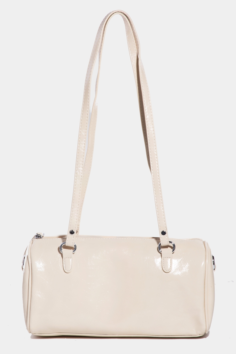 - This hand bag adds a modern mini pocket glossy barrel bag style. Immerse yourself in the details of design, as this hand bag effortlessly becomes a conversation starter.
