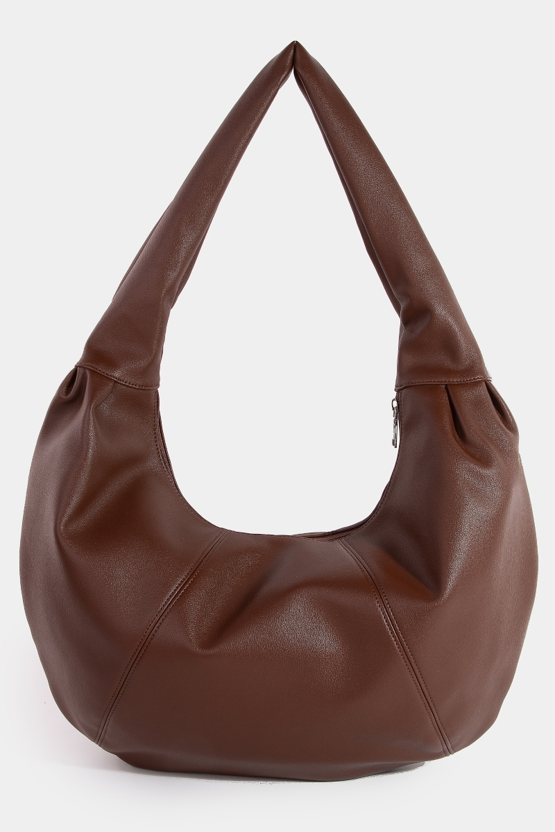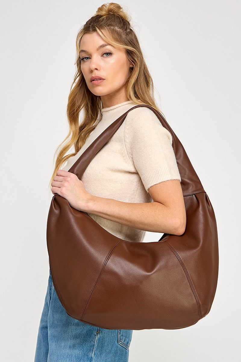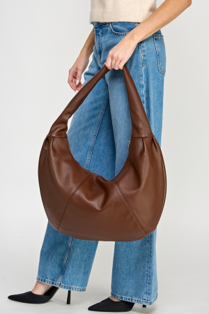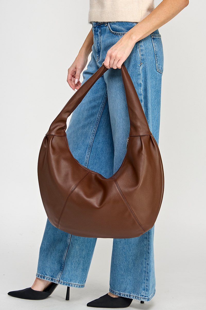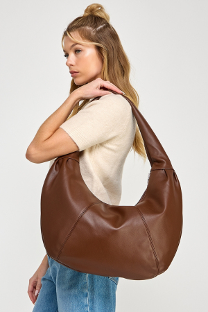 • This hand bag brings a unique panel stitch crescent faux leather shoulder bag style. Savor the craftsmanship that goes beyond the ordinary, as this hand bag effortlessly captivates attention.