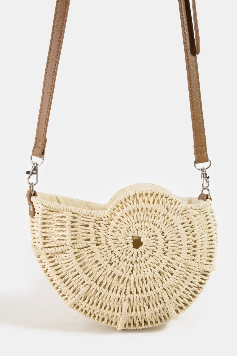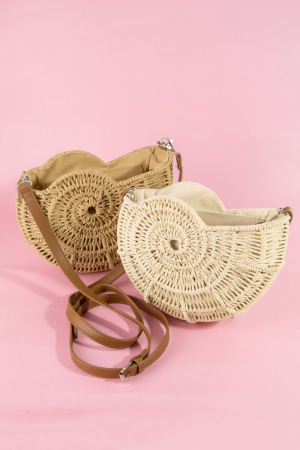 - This hand bag brings a luxurious straw braided round sea shell bag style. Savor the craftsmanship that goes beyond the ordinary, as this hand bag effortlessly captivates attention.