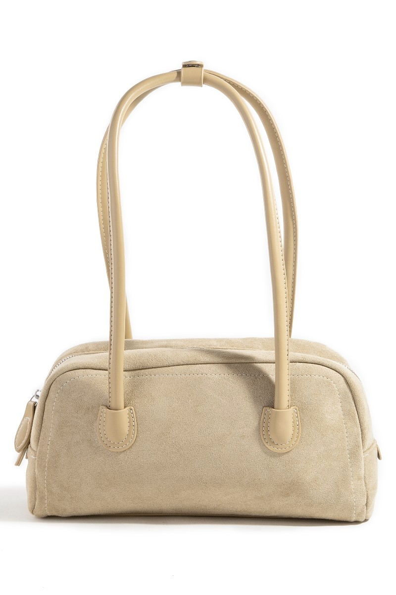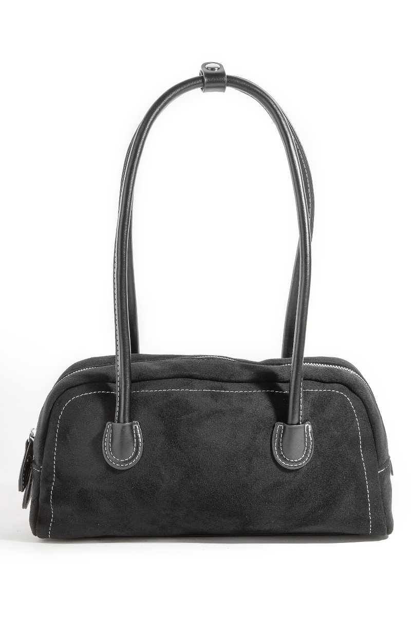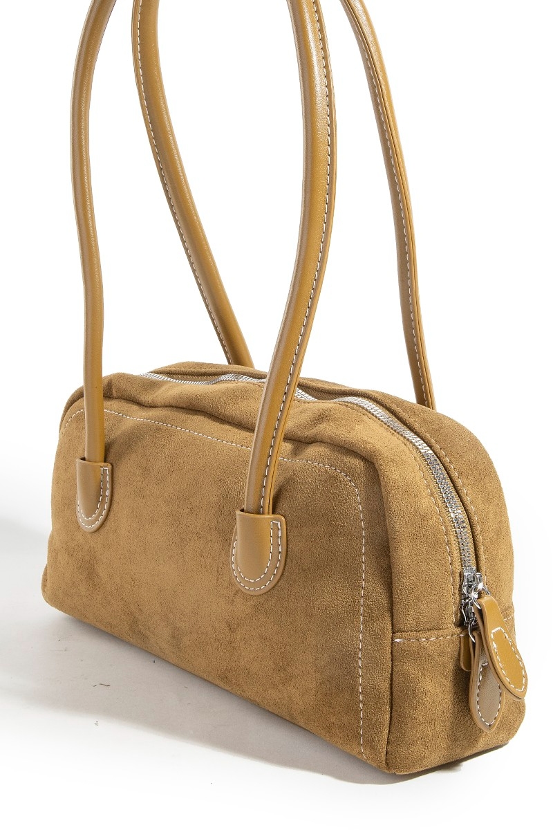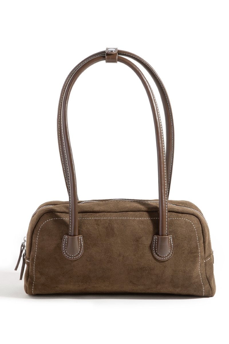- This hand bag features a fashionable faux suede baguette style. Experience the joy of accessorizing with this piece that effortlessly combines versatility and charm.