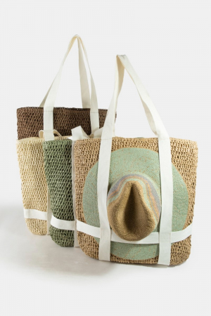 - This tote bag adds a modern straw braided hat carrier style. Celebrate the art of accessorizing with this piece that effortlessly encapsulates modern trends.
